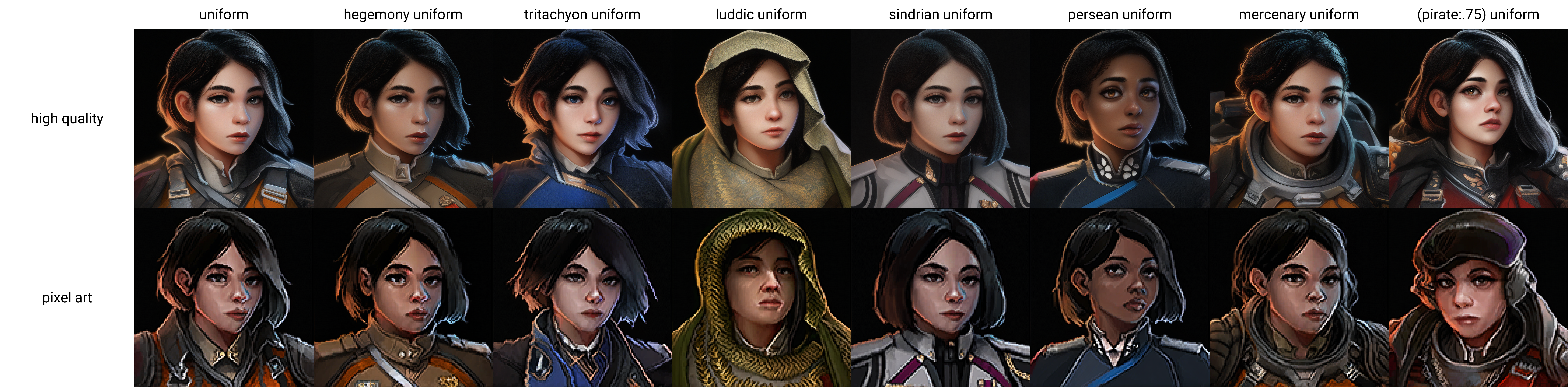 Starsector portrait LORA for generating character portraits in the style of the game Starsector.