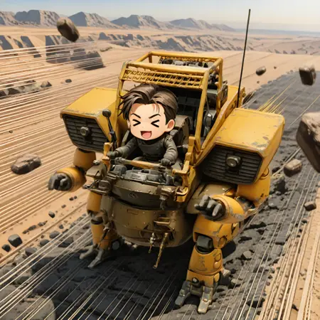 chibi, 1boy,solo, (boy is sitting in cockpit:1.2), >_<, :d,