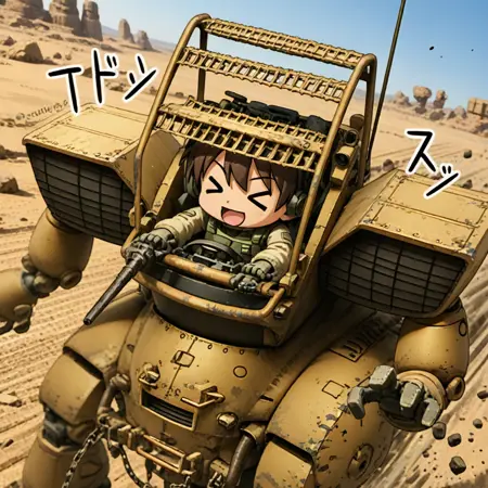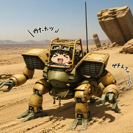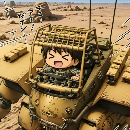 (chibi),1boy,solo, 1mecha, (boy is sitting in the cockpit:1.2), >_<, :d, WM_Gallop-Type,
