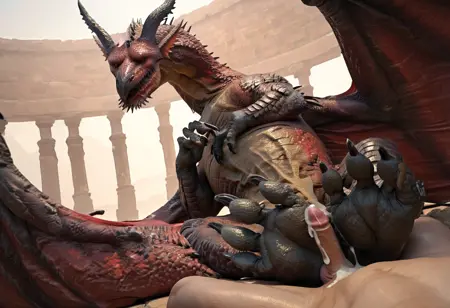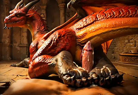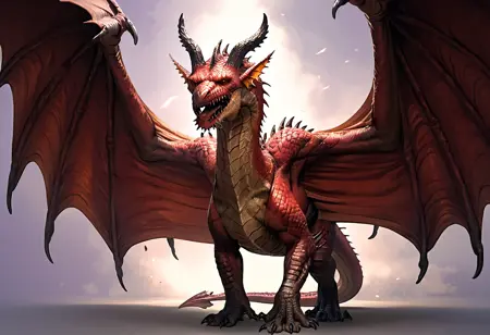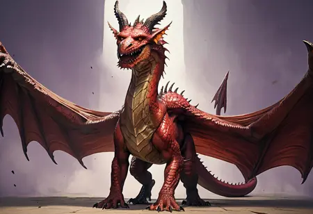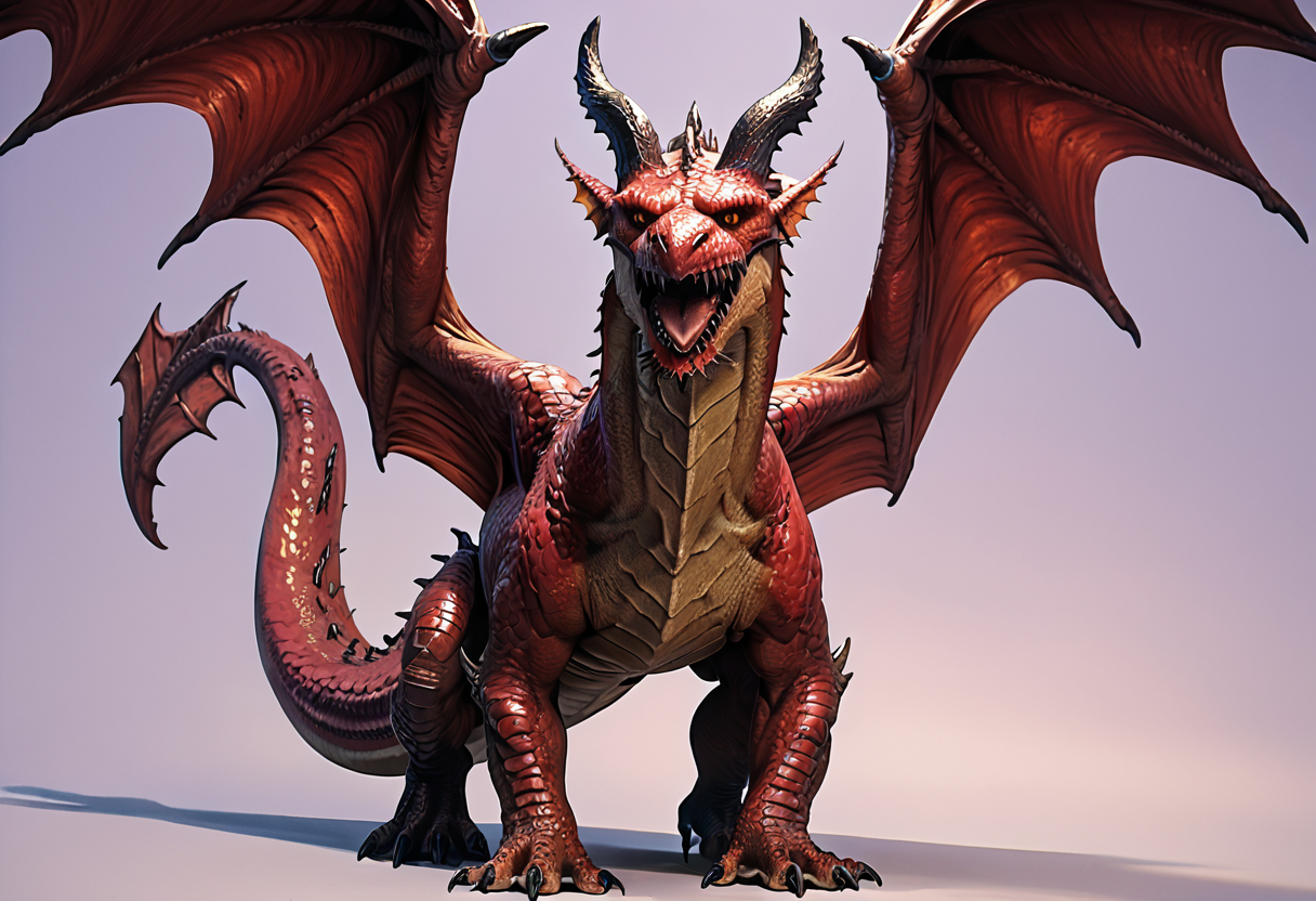 태그: grigori, 빨간 비늘, 드래곤, 날개, 뿔, 발톱, 큰 생물, 사실적, 비늘, 날카로운 이빨, 꼬리, 신화적 생물