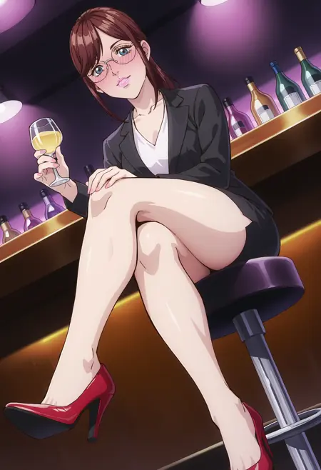 成年: 职场女性,黑色夹克,白色衬衫,黑色铅笔裙,红色高跟鞋
