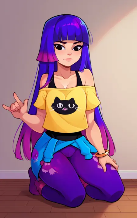 | Trained Words | MikoKubotaSDXL,1girl,black eyes,hime cut,blunt bangs,long hair,pink hair,purple hair,multicolored hair,two-tone hair,gradient hair,shirt,off-shoulder shirt,print shirt,yellow shirt,cat print,striped clothes,black tanktop,tank top,undershirt,tanktop under shirt,jacket around waist,pinky out,off shoulder,purple pants,skirt,leggings,purple pantyhose,bracelet,jewelryCopied! MikoKubotaSDXL,1girl,black eyes,hime cut,blunt bangs,long hair,pink hair,purple hair,multicolored hair,two-tone hair,gradient hair,gloves,black gloves,belt,pants,blunt bangs,fingerless gloves,black armor,black eyes,breastplate,knee pads,shoulder pads,pouch,white bodysuit,sunglassesCopied! |