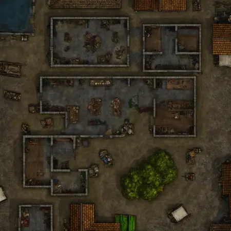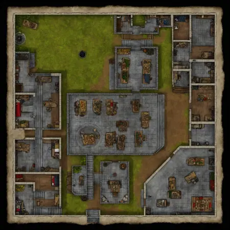 对于特定模型的常规尺寸,可将战斗地图的尺寸视为约 24x24 格(120x120 英尺),例如:
