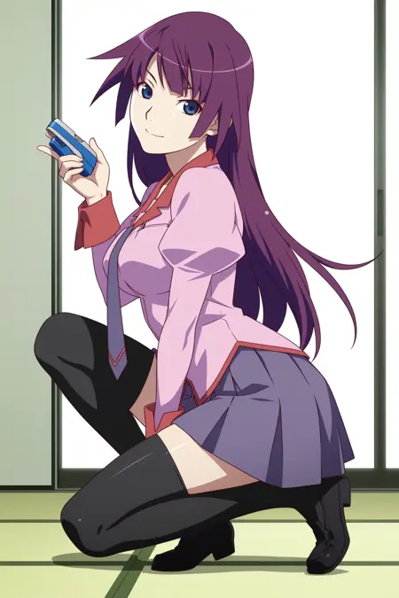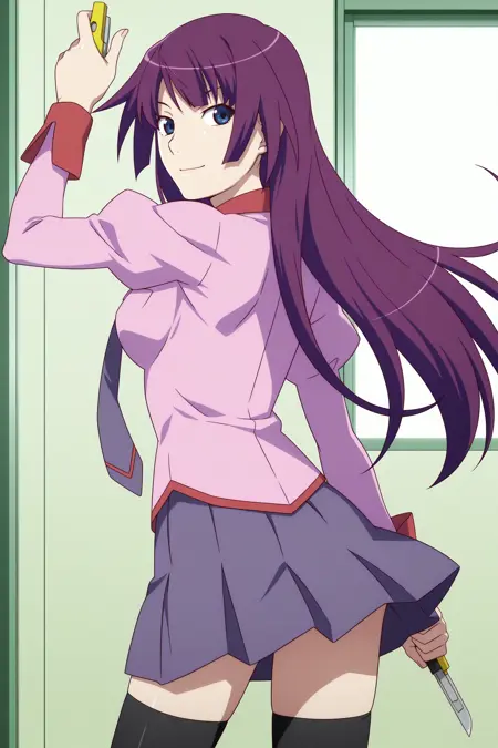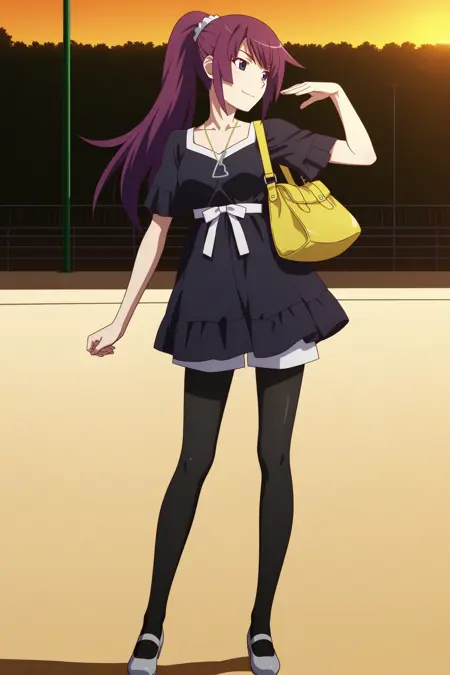 - 只包含校服有些遗憾,因此我还训练了《化物语》中出现的黑色礼服造型,但训练效果不佳。请参考示例图像查看该服装。