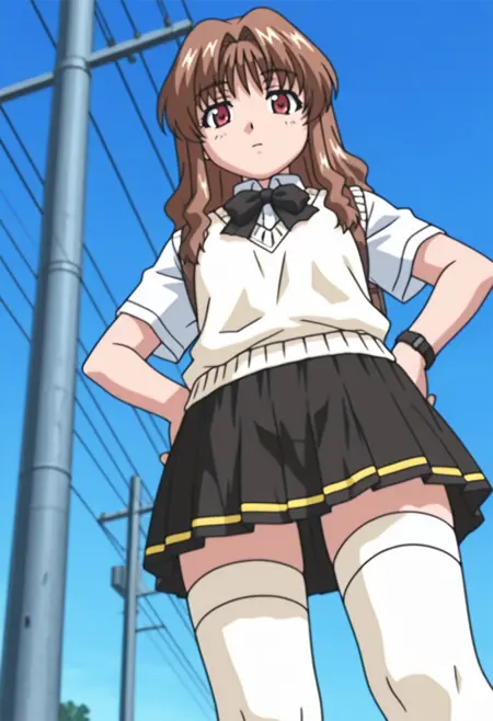 基础提示词:morino_ichigo, 1girl, solo, onegai teacher, long hair, brown hair, wavy hair, pink eyes