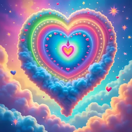 このLoRAは、1985年の古いアニメ番組およびアニメ映画に登場するケアベアランドをテーマとしています。ハートや虹、ピンクの宮殿が広がる、ふわふわした幸せな雲の風景が描かれています。