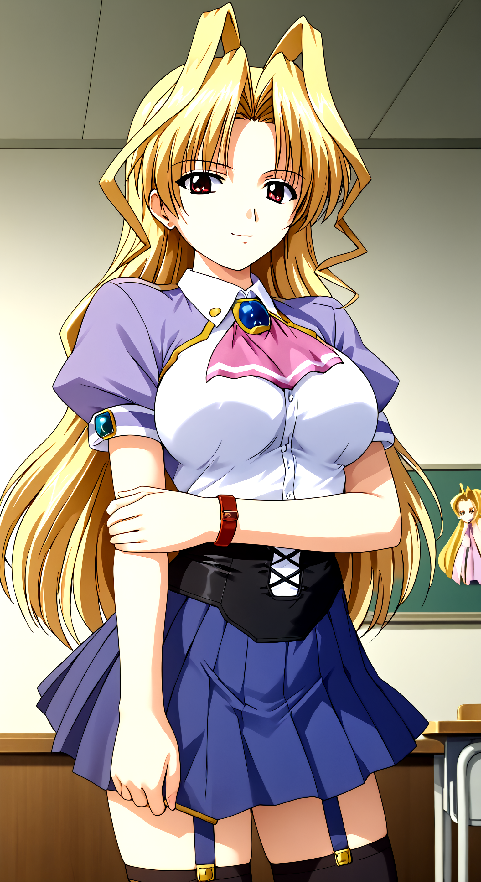 kazetsubaki_kuriko, std_uniform, solo, skirt, thigh_strap, garter_straps, thighhighs