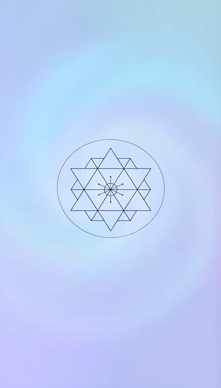 割草机风格。这是一幅数字艺术作品,描绘以渐变背景为中心的几何图案。主体为对称几何形体,形似星星或生命之花,由互锁三角形组成。图案以细黑线勾勒,背景为柔和渐变,由浅蓝过渡至紫色,营造宁静空灵效果。几何设计由中心六边形与周围小三角形构成对称复杂的网状结构。