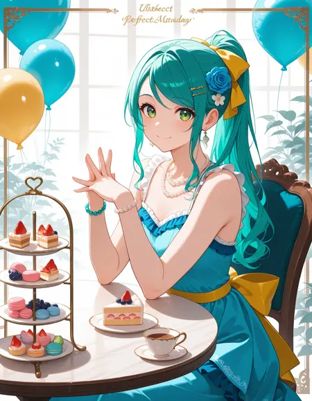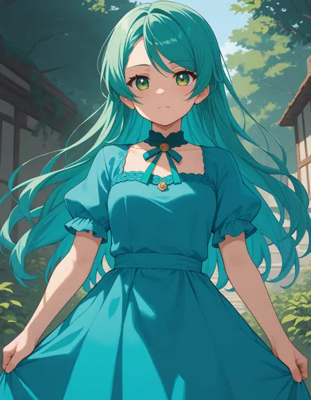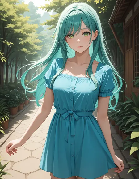 sayo_h, long hair, green hair, green eyes, aqua hair