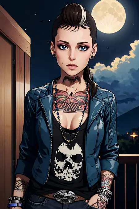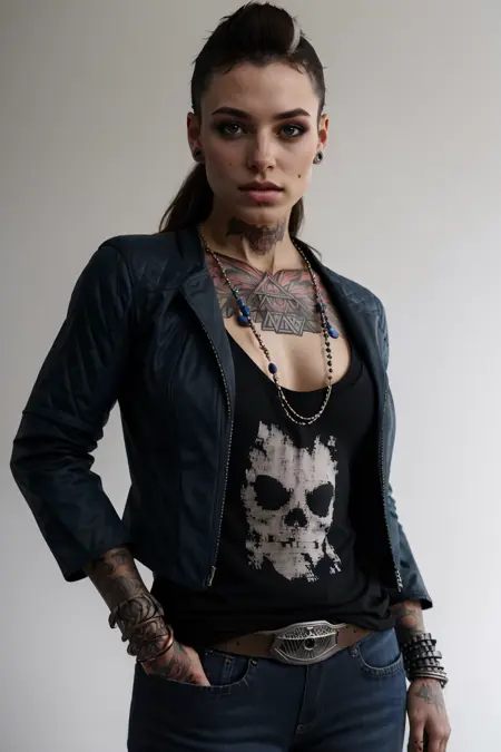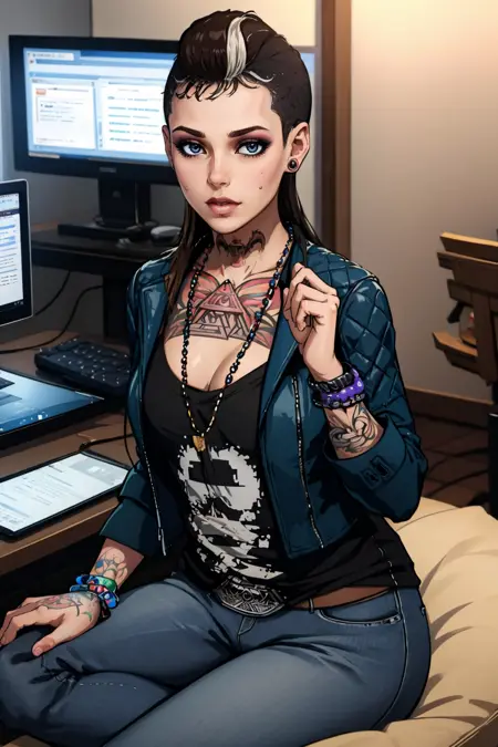 衣装トリガー:タトゥー、ピアス、ジャケット、パンツ、メイク、ネックレス、ブレスレット、イヤリング