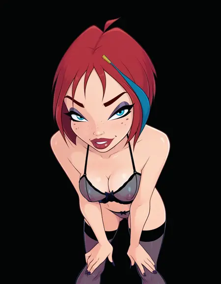 xmirtax, red hair, short hair, blue eyes, streaked hair, freckles