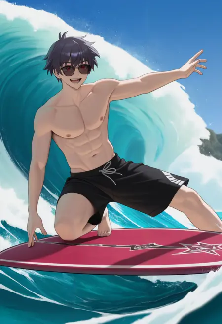 外見タグ: 赤い目、短い髪、黒髪、前髪、目の間に髪