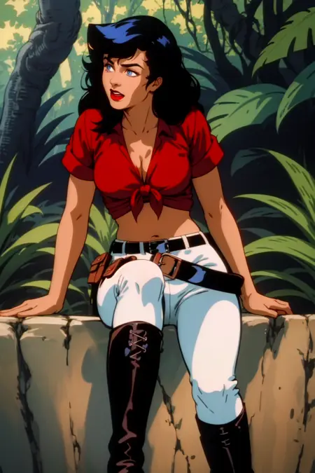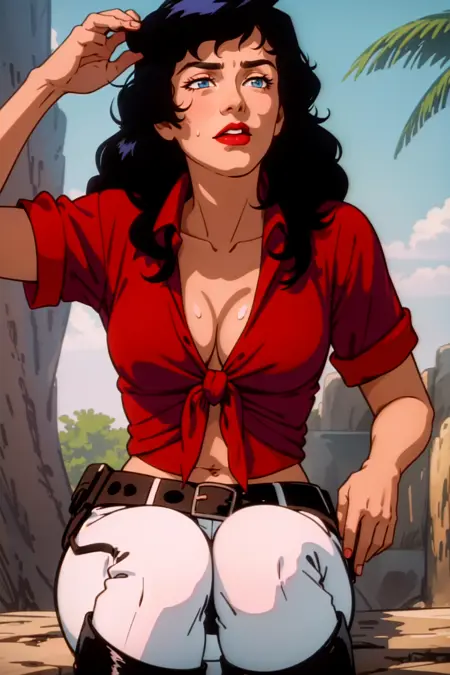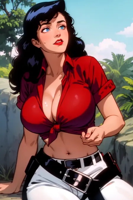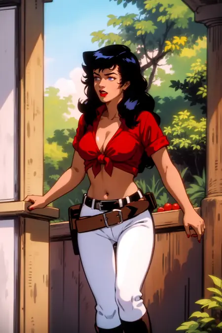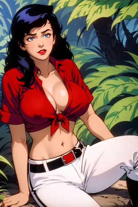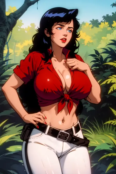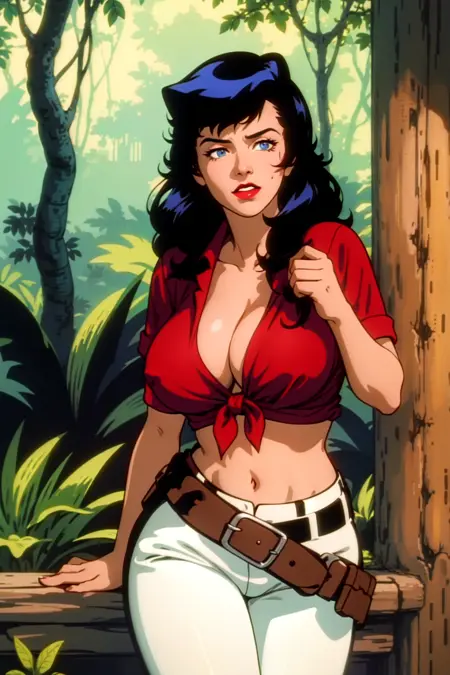 Trained on screencaps of the series. It knows the clothes well, it's kinda tricky to alter her clothes (or remove them) but can be done with clever prompt work.