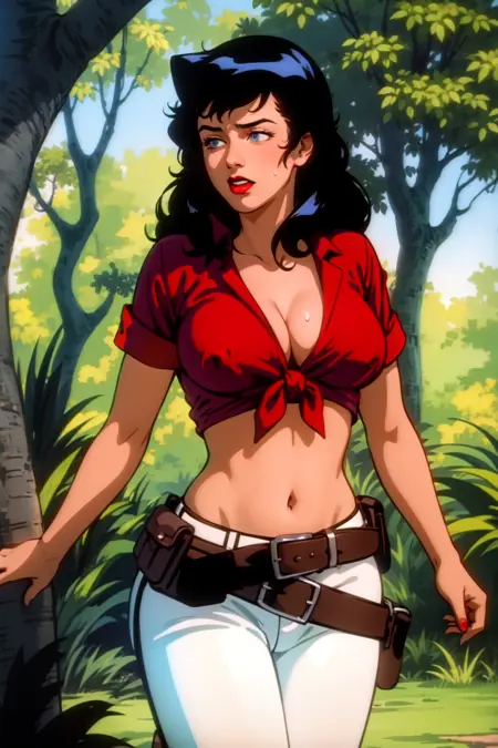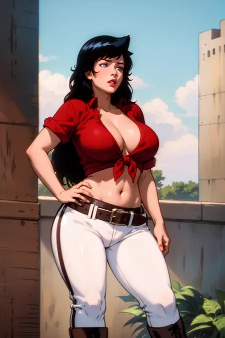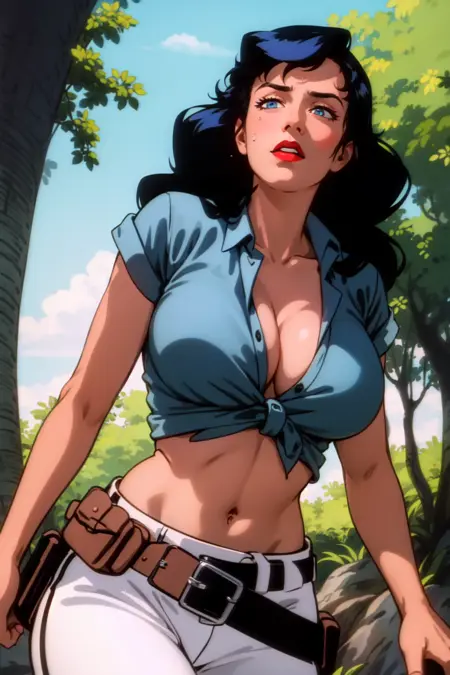 シリーズのスクリーンキャプチャで学習済み。服の再現は得意ですが、服を変更(または脱がせ)るのは少し難しいですが、巧みなプロンプトで実現可能です。