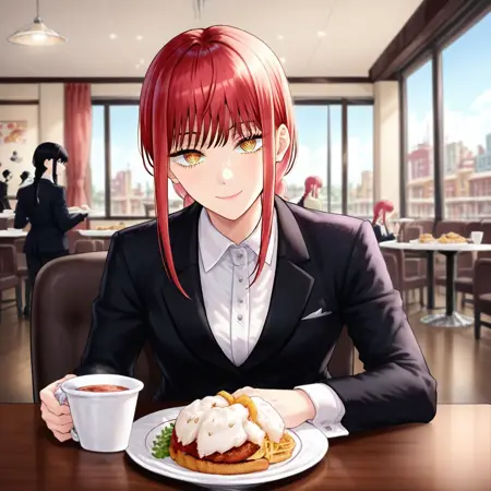 Helpful tags: across table, pov, formal, restaurant, facing you, looking at viewer, pov eye contact