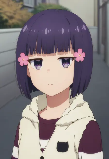 misuzu, 1girl, purple eyes, purple hair, short hair, bob cut,
