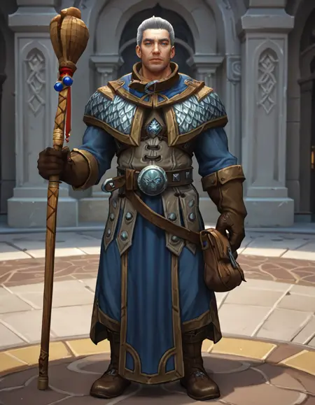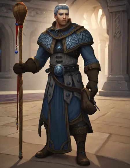 wow_khadgar, mature male, grey hair, blue eyes, stubble