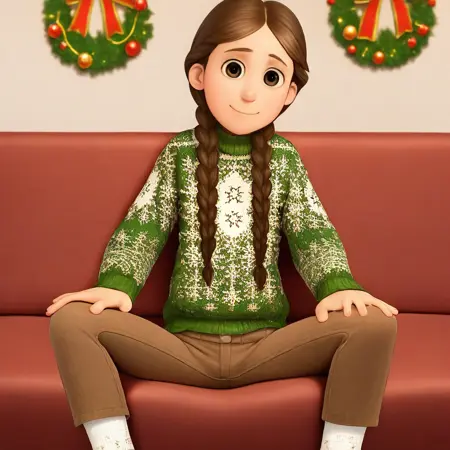 sam beccles, that christmas, brown hair, two braids, brown eyes