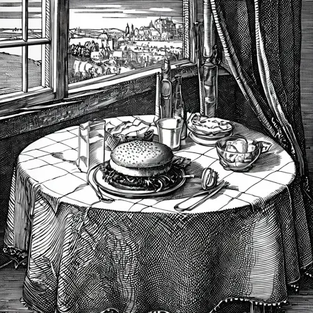 알브레히트 뒤러의 판화를 기반으로 한 최초의 LoRA 버전.