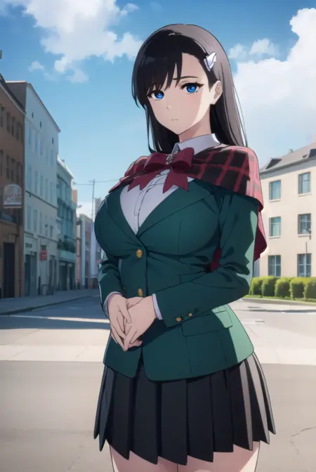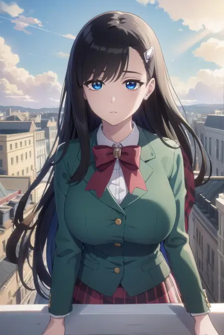noel niihashi, 长发, 蓝眼睛, 黑发, 头饰, 发夹, 成熟女性, 斜眼, 狭长眼睛,