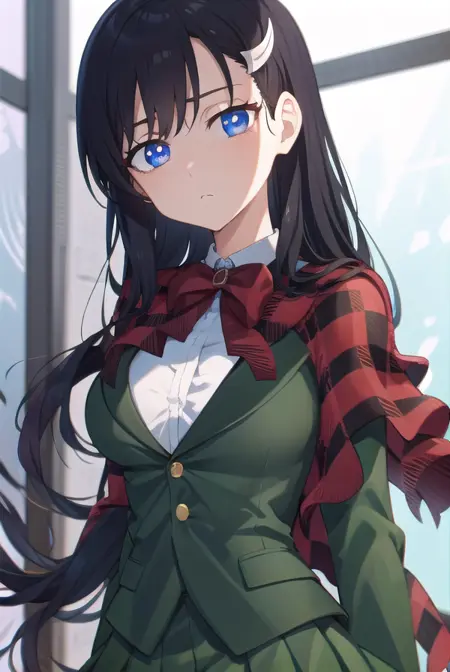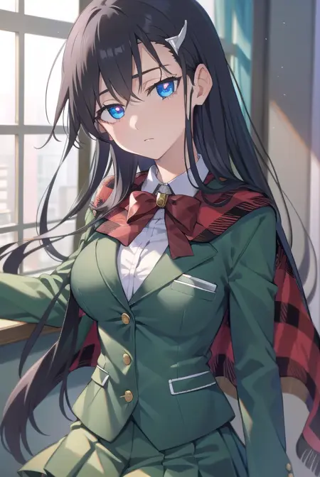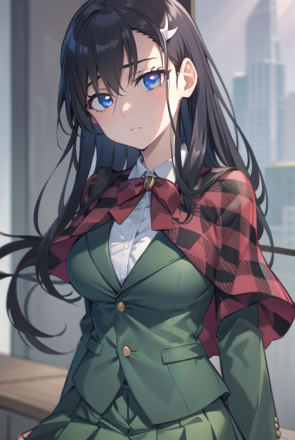noel niihashi, 长发, 蓝眼睛, 黑发, 头饰, 发夹, 成熟女性, 斜眼, 狭长眼睛,