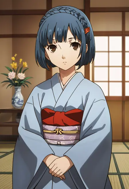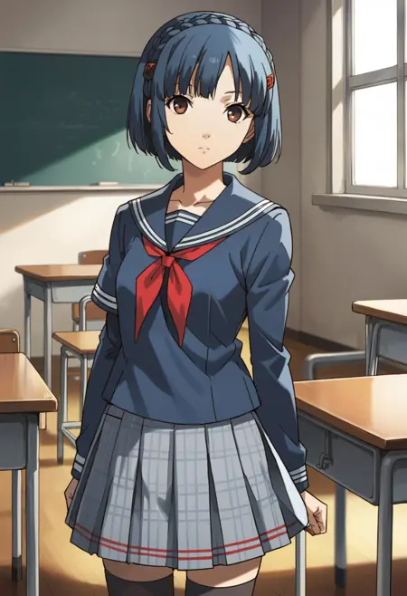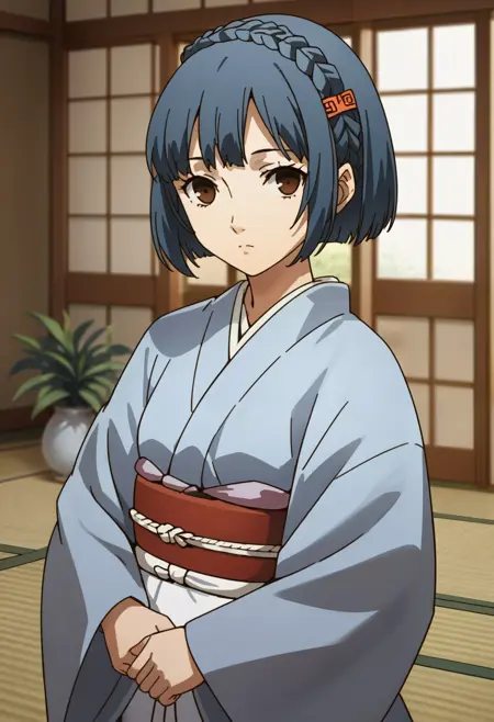 彼女はアニメでのみ登場するため、モデルの学習データはアニメのスタイルに強く偏っている。学習データには着物姿や八神高校のトレーナージャケット姿の画像が含まれているが、これらは十分な量ではないため、正式な「衣装」として扱うのは難しい。