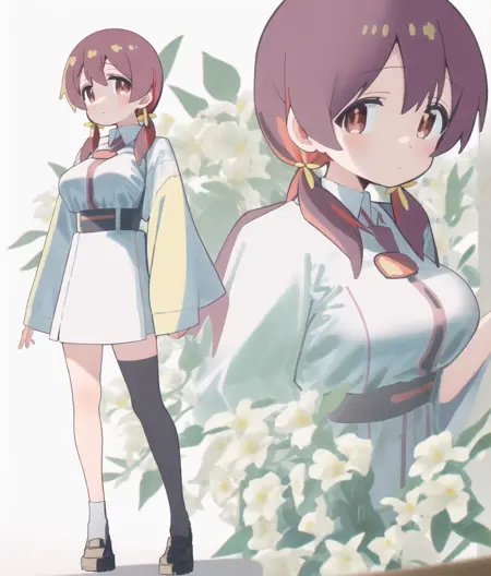 - 服装似乎已被正确学习。我不确定触发每种服装所需的最低条件。请使用常识:例如制服可写为“school uniform, jacket”或“school uniform, suspenders”;对于 Mihari,可写“bolo tie, labcoat”。使用负向提示词避免混合效果。