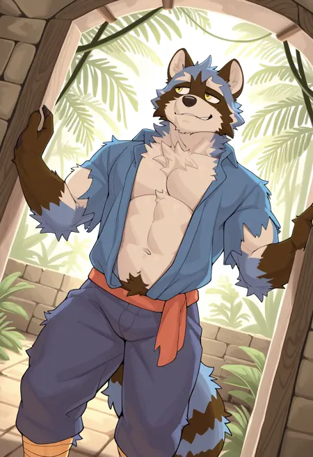 Pony: score_9, score_8_up, score_7_up, high quality, hires, by tupidwithouts, 1boy, solo, furry, muscular, bara, ...your tags...