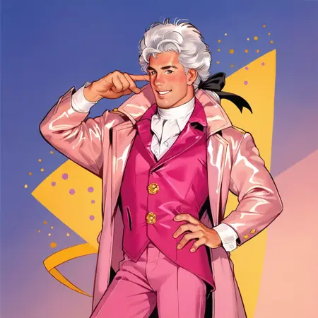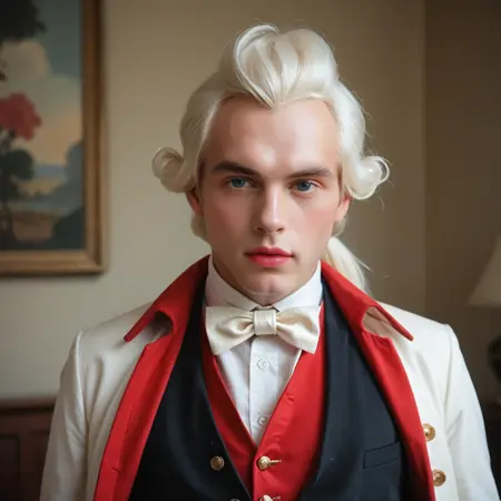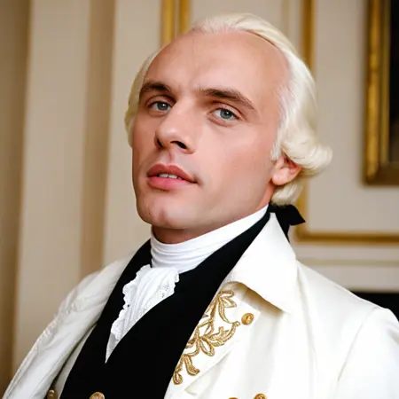 我使用了一个仅包含20张写实图像的小型数据集(AI编辑的画作和照片)。数据集中的所有图像都描绘了佩戴假发并带有细腻时代妆容的英俊男性。请不要期待完全的历史准确性(或短裤)。