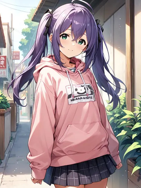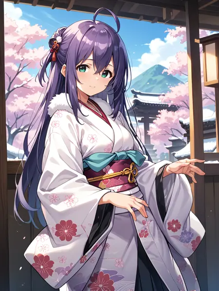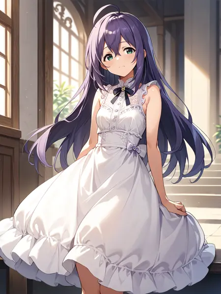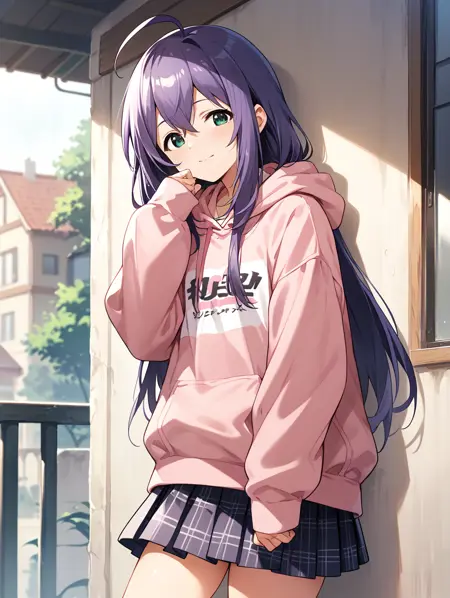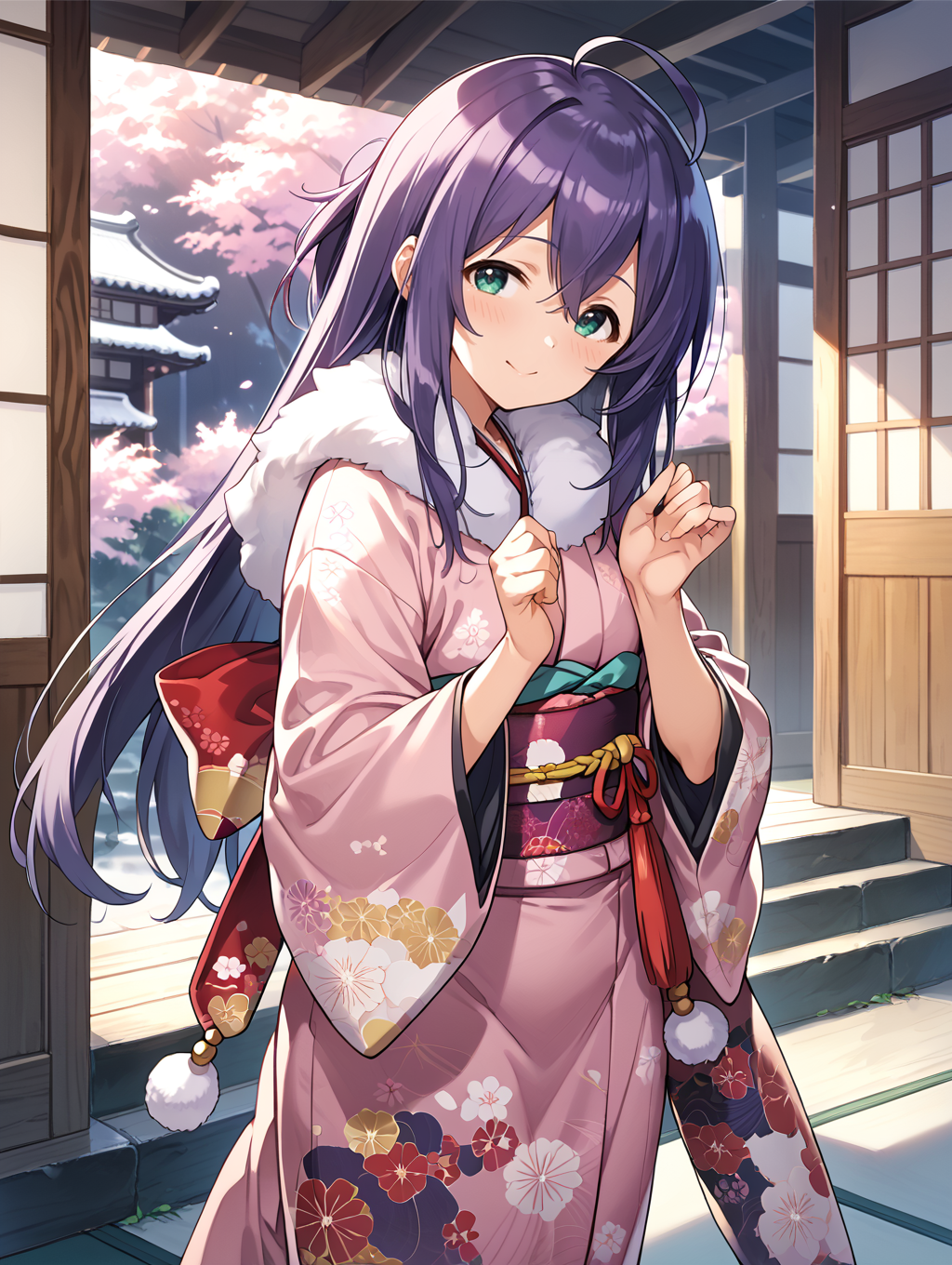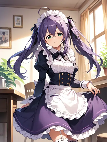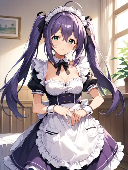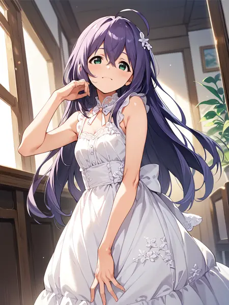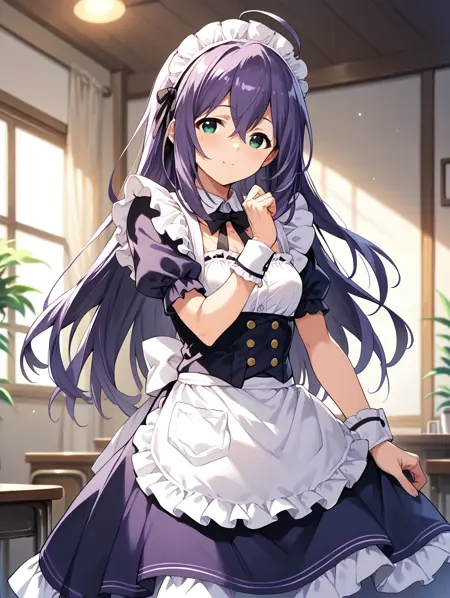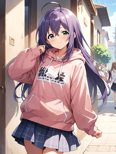 mochizuki anna,purple hair,green eyes,ahoge,long hair,