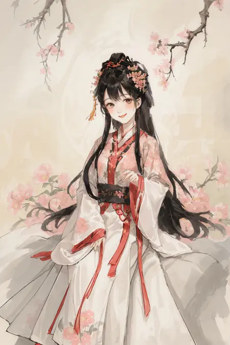 現在のAI絵画では、データセットの性質上、デジタルタブレットによる描画や厚塗りなどの現代的な技法が一般的です。しかし、頻繁に使用していると審美疲労が生じやすくなります。このモデルは、細い輪郭線の表現に焦点を当て、従来の紙上の芸術スタイルを模倣することを目指しています。流麗でシンプルな線、明確な輪郭を特徴とし、背景や衣装には紙に広がる水彩画のような質感を再現するよう工夫しました。これにより、ユーザーにこれまでにない視覚体験をお届けすることを目的としています。