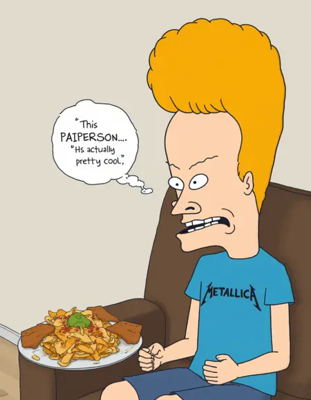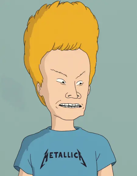 ここに掲載する最初のアニメキャラクターは、数回の試行を経て、このバージョンがうまく機能し、Cornholioまで含まれています。最近の高品質な『ビーヴィスとバットヘッド』から学習させました。これは私の必要とする目的には適していますが、興味があれば、より90年代の雰囲気を出したバージョンを作成できると思います。