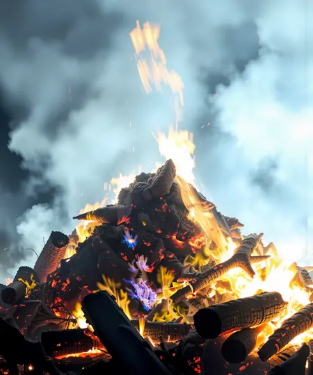 Fire and Flames, Burning wood.