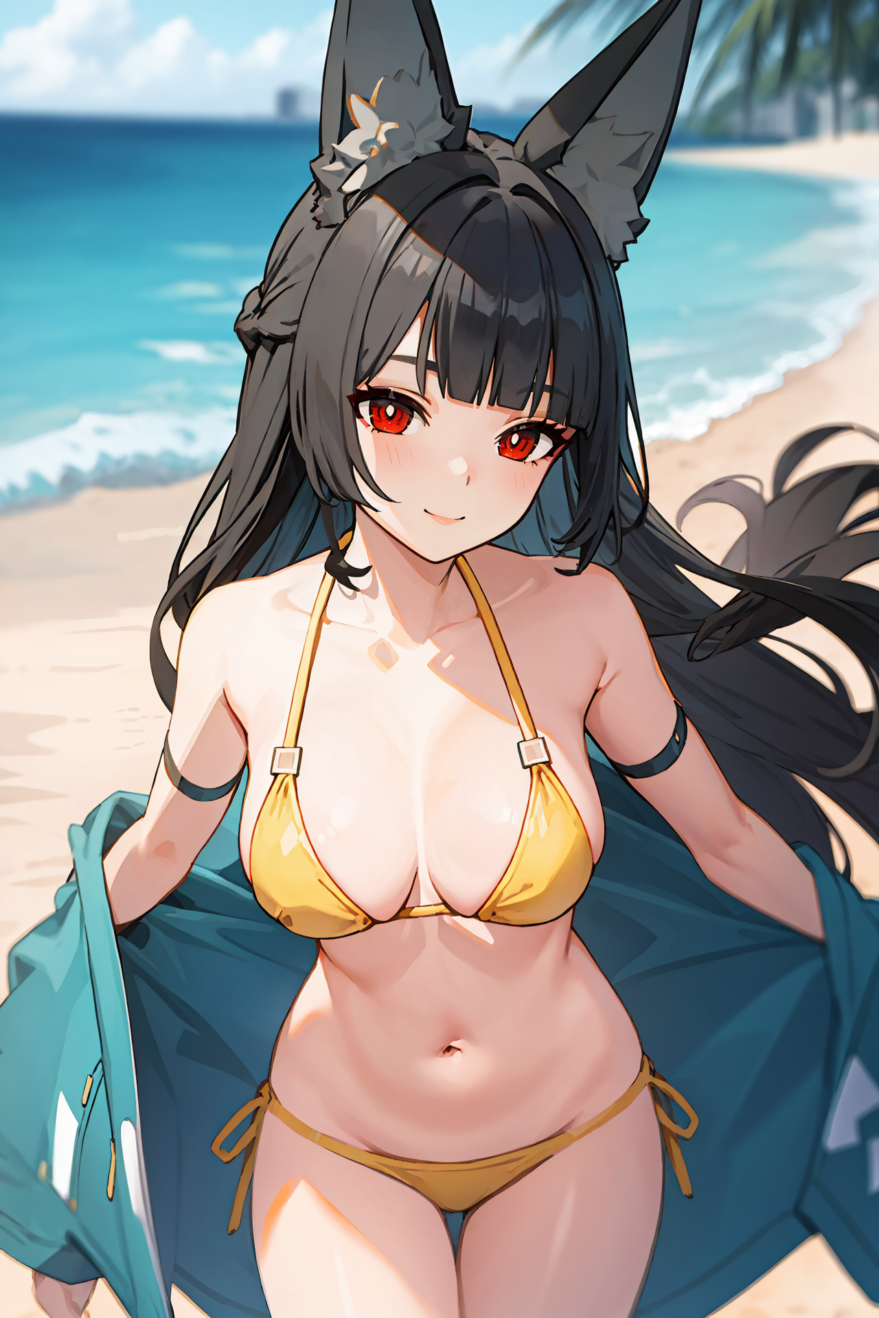 The model was well trained that the default costume can be removed/changed easily even with high lora weight, recommended weight is 0.8~1