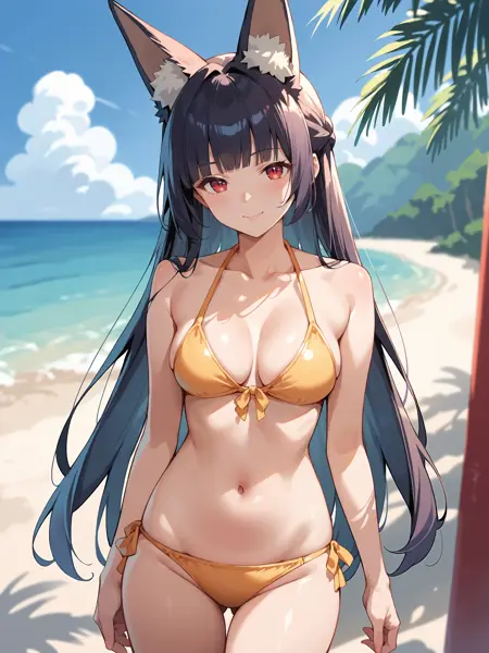 The model was well trained that the default costume can be removed/changed easily even with high lora weight, recommended weight is 0.8~1