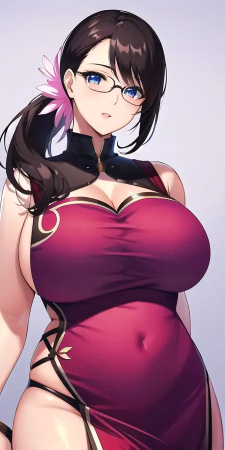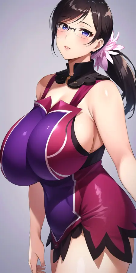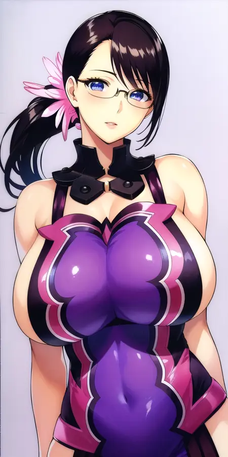 以下の設定で、ある程度の結果を得られました:lora:Cattleya\_QB:.45, Cattleya_QB, 1girl, black_hair, huge_breasts, glasses