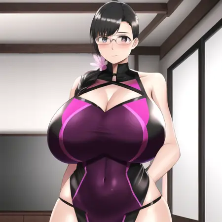 以下の設定で、ある程度の結果を得られました:lora:Cattleya\_QB:.45, Cattleya_QB, 1girl, black_hair, huge_breasts, glasses