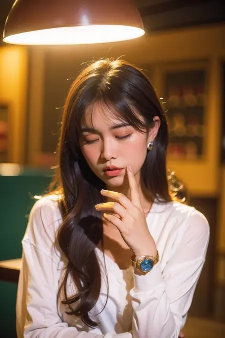 ポジティブプロンプト: Best Quality, Masterpiece, Ultra High Resolution, (Realisticity:1.4), Original Photo, Cinematic Lighting, 1Girl,