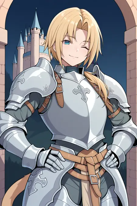 トリガー単語は「z1d4ne」で、「金髪、分け目のある前髪、低いポニーテール、青い目」は必須です。