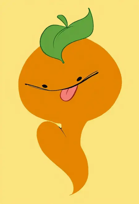 1girl, Citrus, orange body, leaf on head, dot eyes