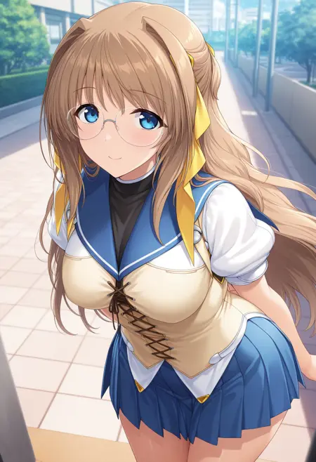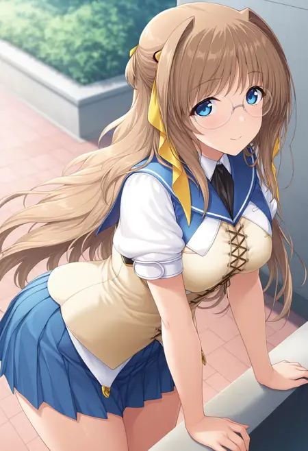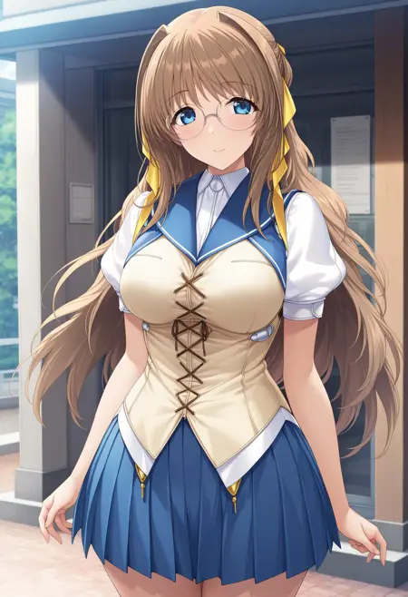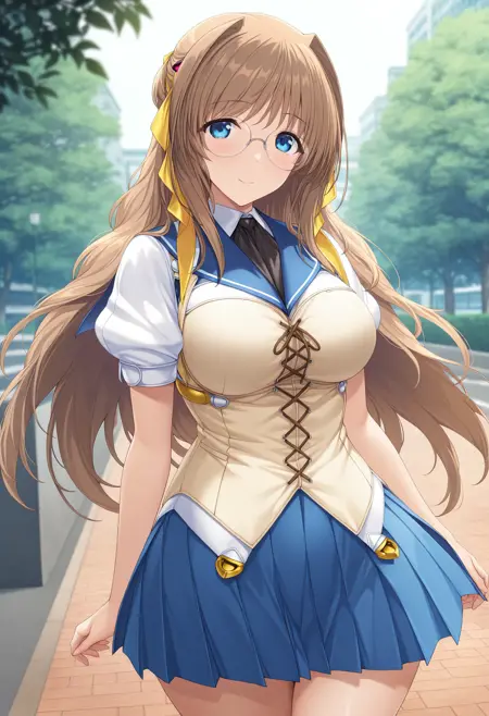 触发词: c-kouenji、蓝眼睛、长发、棕色头发、发带、眼镜,