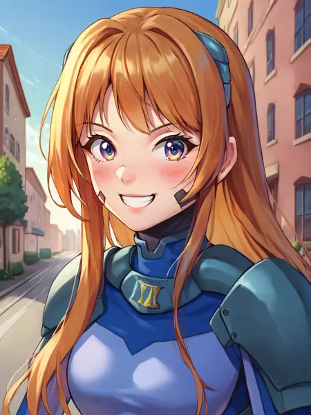 许多Nanoha角色的发型都很夸张,我尝试用“spiked hair, hair intakes, asymmetrical hair”来标注。如果你生成的头发奇怪,可以尝试将这些词加入负面提示词。