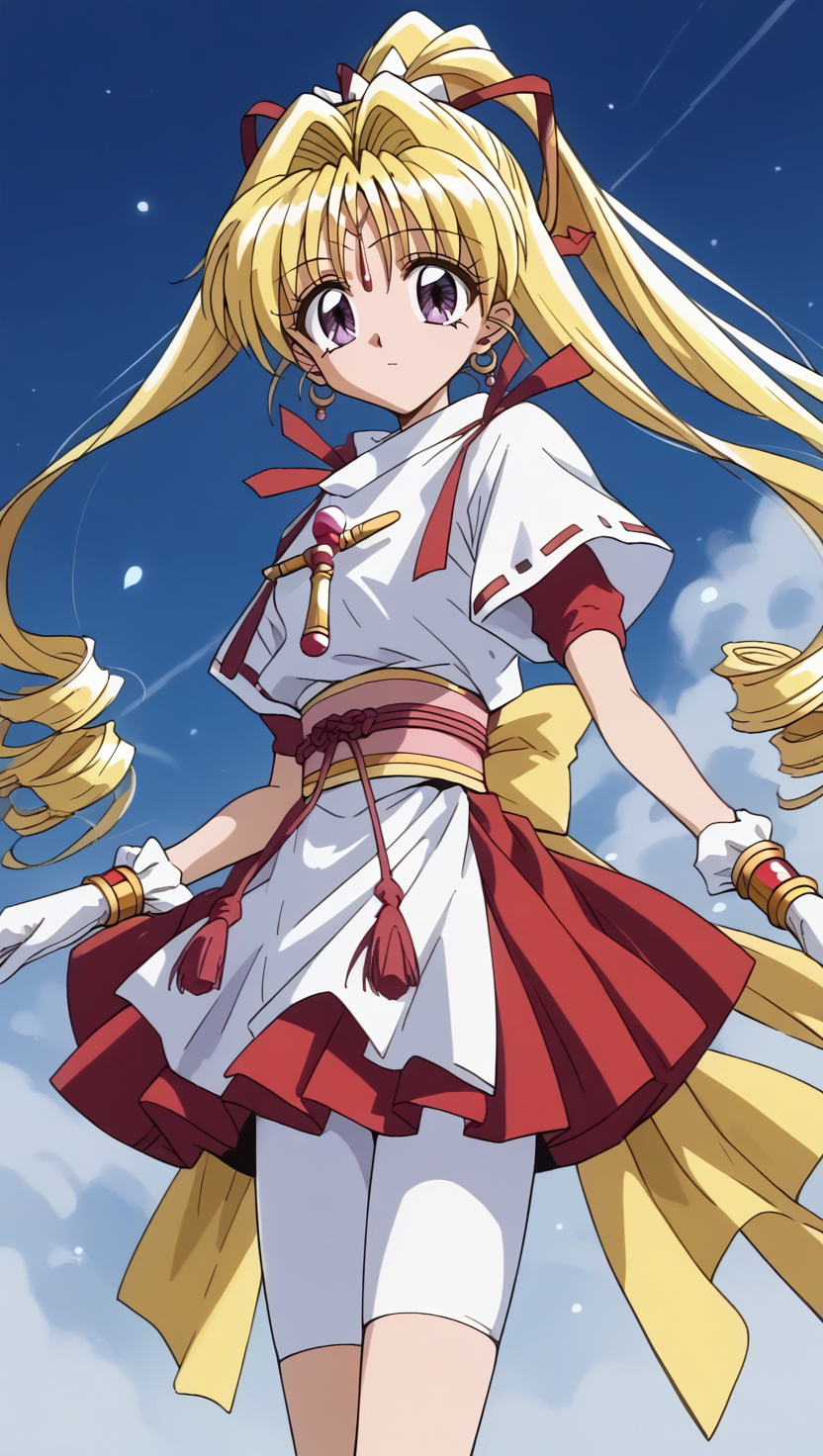 변환 복장 1: KKJs2, 아티스트 A 스타일, 보라색 눈, 이마 장신구, 금발 머리, 매우 긴 머리, 드릴로 만든 긴 측면 머리카락, 뒤쪽에 한 개의 높은 드릴 페니테일, 흰색 머리 리본, 귀걸이, 단순한 흰색 복장, 접힌 세로 칼라, 흰색 칼라, 어깨 장식 없음, 어깨에 빨간 리본 장식 없음, 느슨한 허리, 빨간 및 노랑 띠 없음, 빨간 로프 달린 장식 없음, 뒤쪽에 큰 노랑 bows 없음, 흰색 옆 슬릿과 긴 셔츠 꼬리, 흰색 짧은 소매, 흰색 짧은 소매에 빨간 액센트 없음, 짧은 빨간 안쪽 소매 없음, 가슴에 십자가 장식, 벌거벗은 손, 흰색 계층적 미니스커트, 벌거벗은 다리, 벌거벗은 발 (부정 프롬프트: 빨간 안쪽 옷, 흰색 상의, 짧은 소매에 빨간 액센트, 짧은 빨간 안쪽 소매, 노출된 팔 아래부분, (어깨 장식:1.3), (어깨의 빨간 장식:1.3), 금팔찌, 흰장갑, 빨간 및 노랑 띠, 빨간 로프 달린 장식, 큰 노랑 bows, 계층적 미니스커트, 빨간 미니스커트, 앞뒤를 덮는 흰색 앞치마, 흰색 자전거 반바지, 허벅지 커버, 자전거 반바지와 부츠 사이의 노출된 허벅지, 흰색 부츠, 부츠를 감싸는 빨간 십자형 리본)