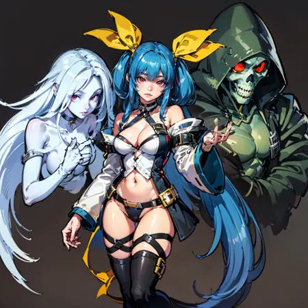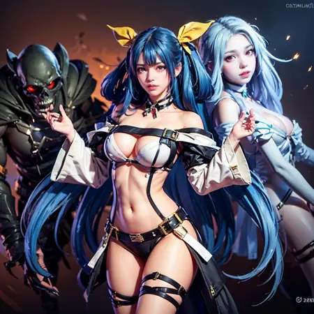 | 训练词汇 | dizzy,dizzy (guilty gear),ribbon,red eyes,blue hair,breasts,thighhighs,tail,hair ribbon,long hair,yellow ribbon,navel,tail ribbon,tail ornament,twintails,wings,cleavage,monster girl,choker,asymmetrical wings,belt,simple background,panties,black panties,underwear,thigh strap,wide sleeves,white background,detached sleeves,bare shoulders,large breasts,hair rings,1girl,2girls,looking at viewer,1boy,hood,thighs,full body,skull,multiple girls,bangs,已复制! |