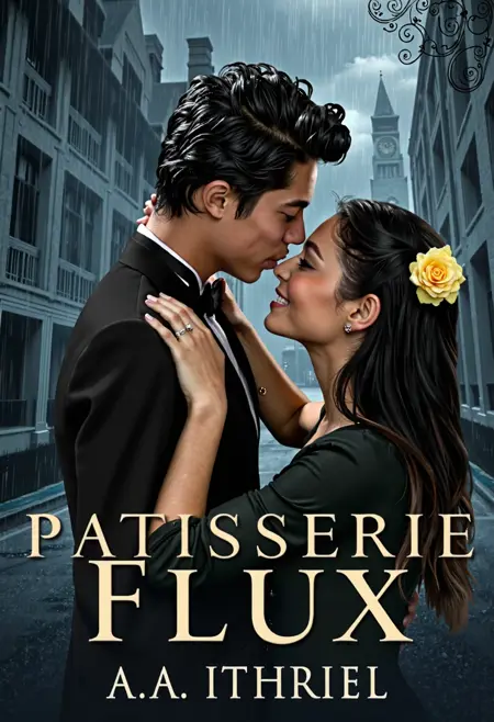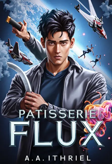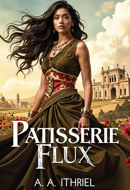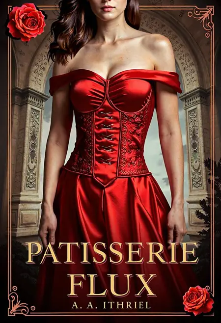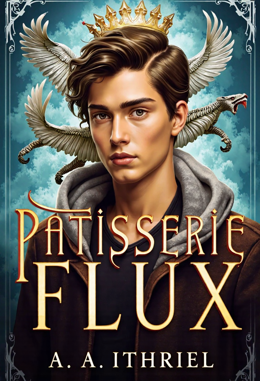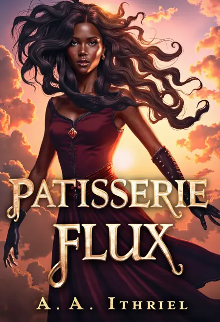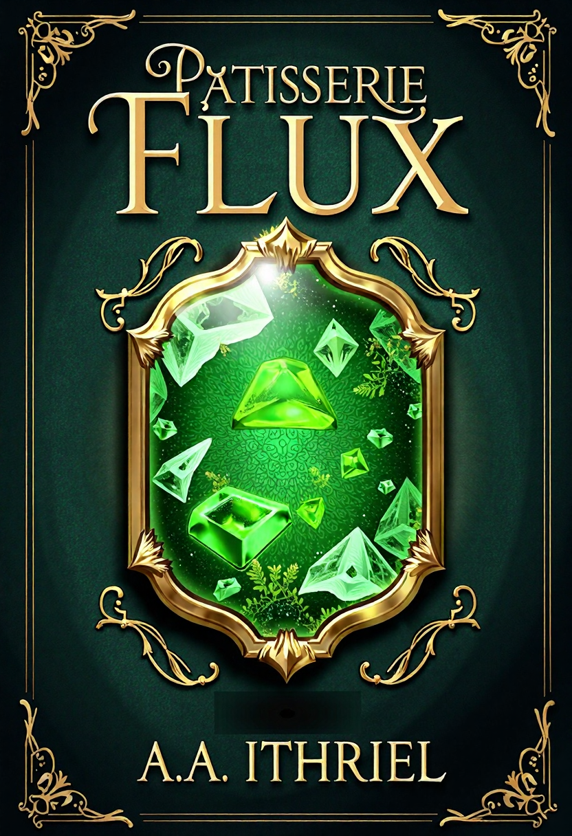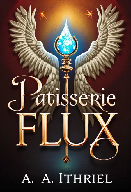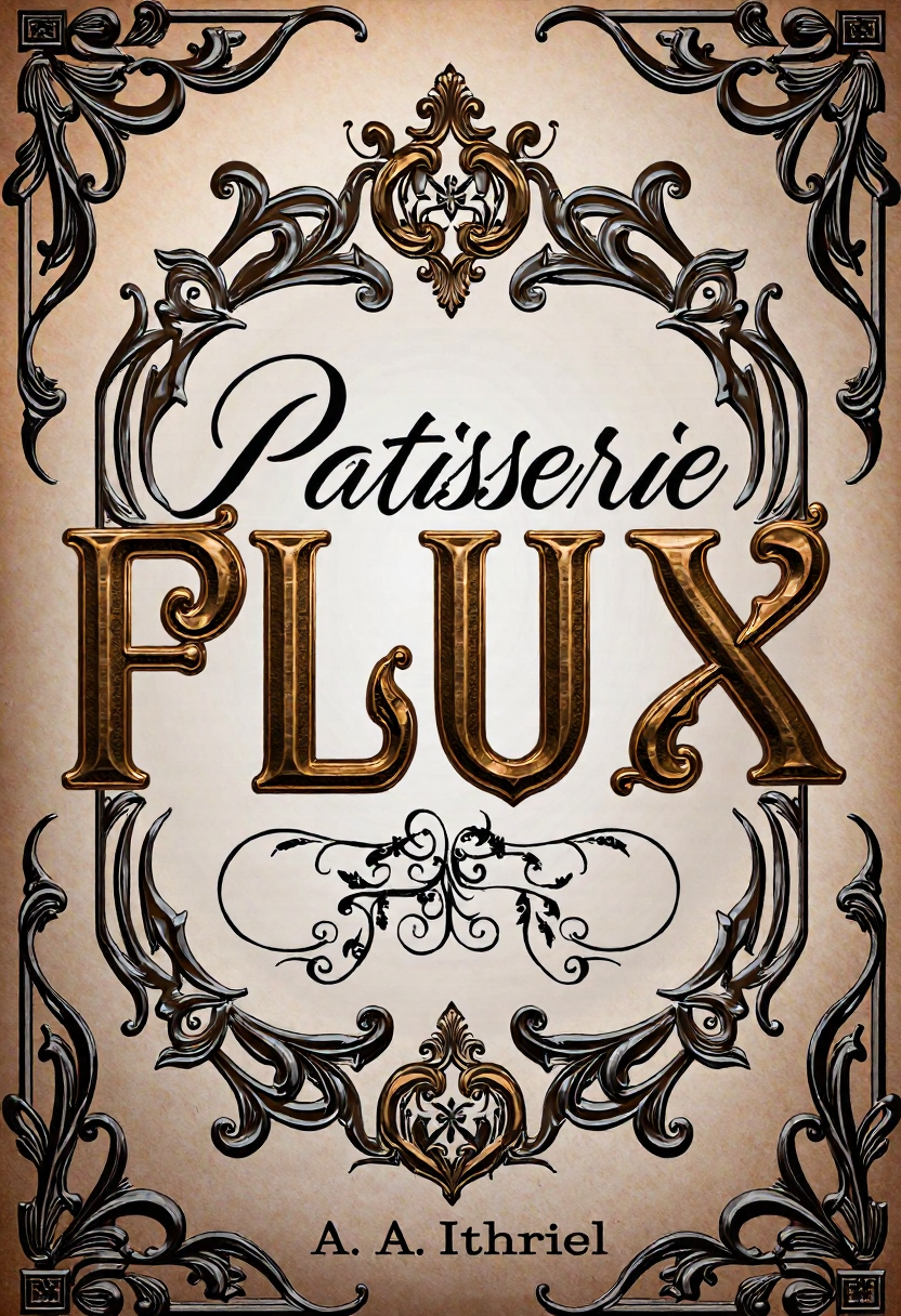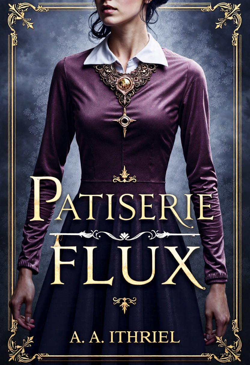 [触发词],青少年奇幻书籍封面,标题为“Patisserie FLUX”,文本“Patisserie FLUX”由“A.A. Ithriel”创作,文本“A.A. Ithriel”。[封面描述]