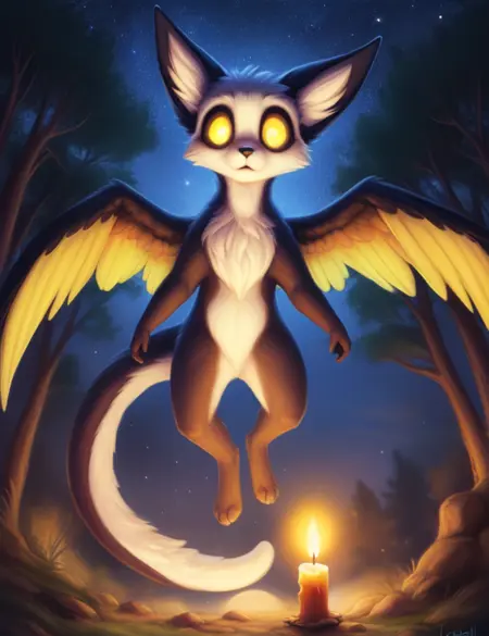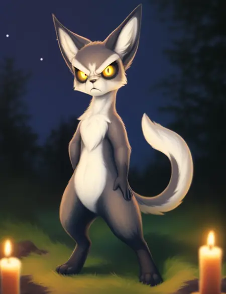 MokiVar1, ((Large yellow eyes, white sclera, yellow pupil,)), white tip of tail, chibi, small body,