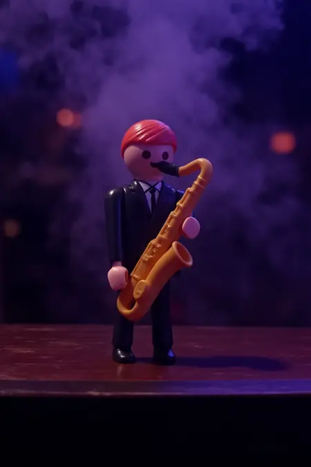 Playmobilは1970年代から続くドイツ製のおもちゃで、ヨーロッパの多くの国で非常に人気があります。このLoRAは、現実の環境におけるPlaymobilフィギュアの写真で学習されています。
