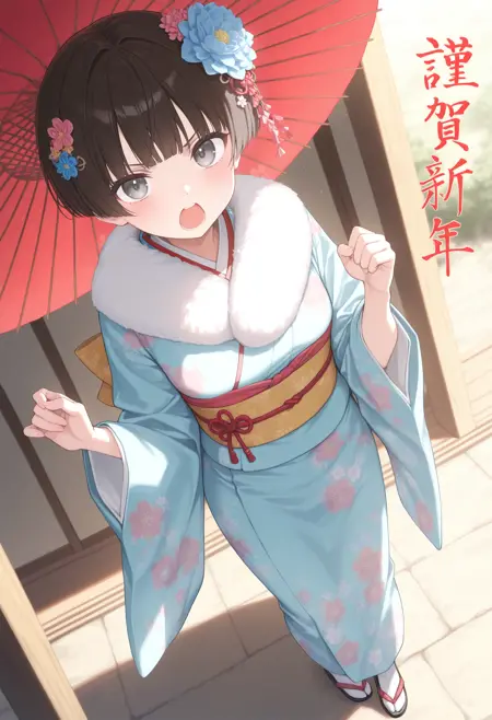 日本の1月1日に新年の挨拶として郵便はがきにお祝いの言葉を書いて送る習慣があり、このLoRAはその際の絵柄を作成するために設計されています。