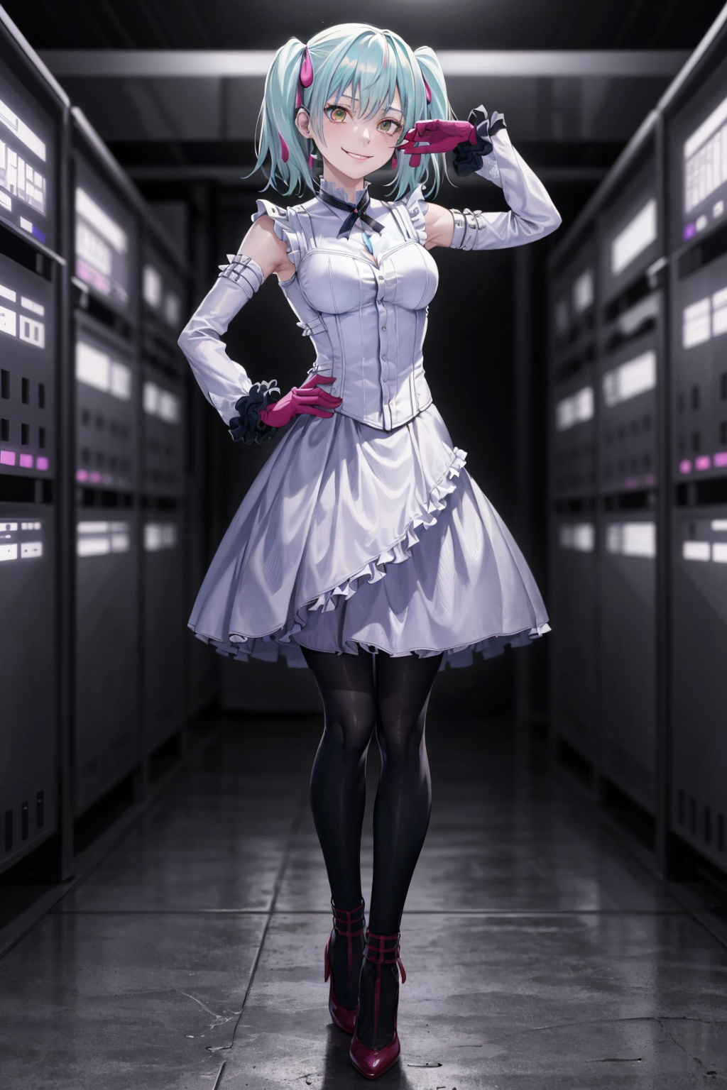 CO 타비타, 어드밴스 워즈: 루인의 날. 활성화 프롬프트는 "TabithaAW"이며, 정확한 외모를 원한다면 "프릴", "패션 드레스", "치마", "트윈테일" 등의 프롬프트를 추천합니다.