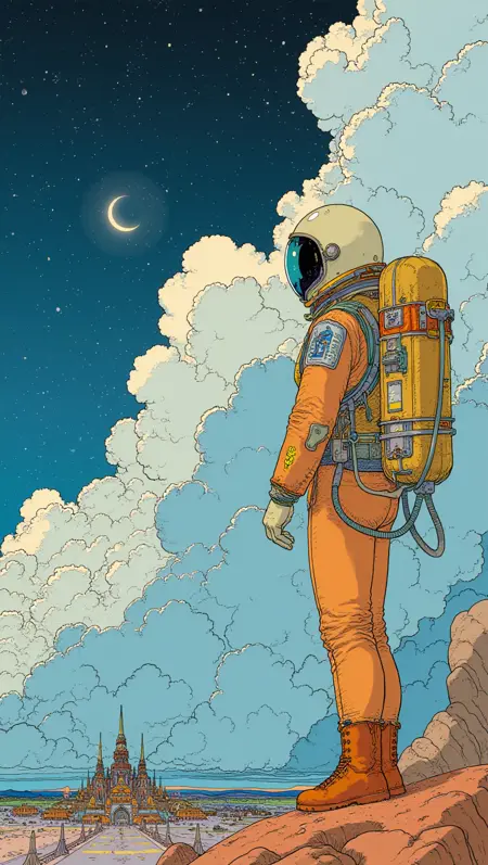 该LoRa模型旨在生成风格类似让·吉罗(Jean Giraud,又称“Mœbius”)开创的“Ligne Claire”艺术风格的图像。